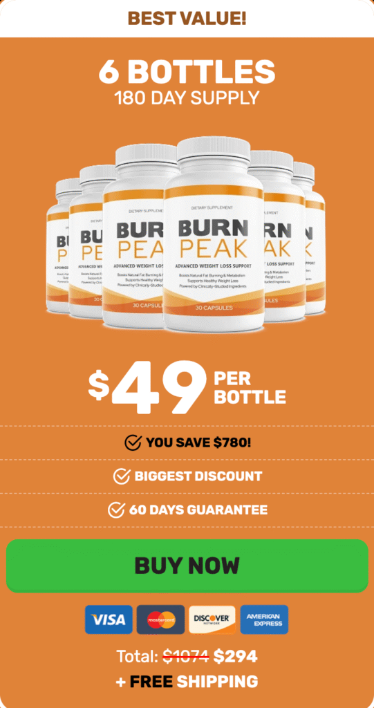 If you’re serious about boosting metabolism, burning fat naturally, increasing energy, and improving overall vitality, this is your chance to secure BurnPeak at the best available price—with a 60-day money-back guarantee to try it completely risk-free.